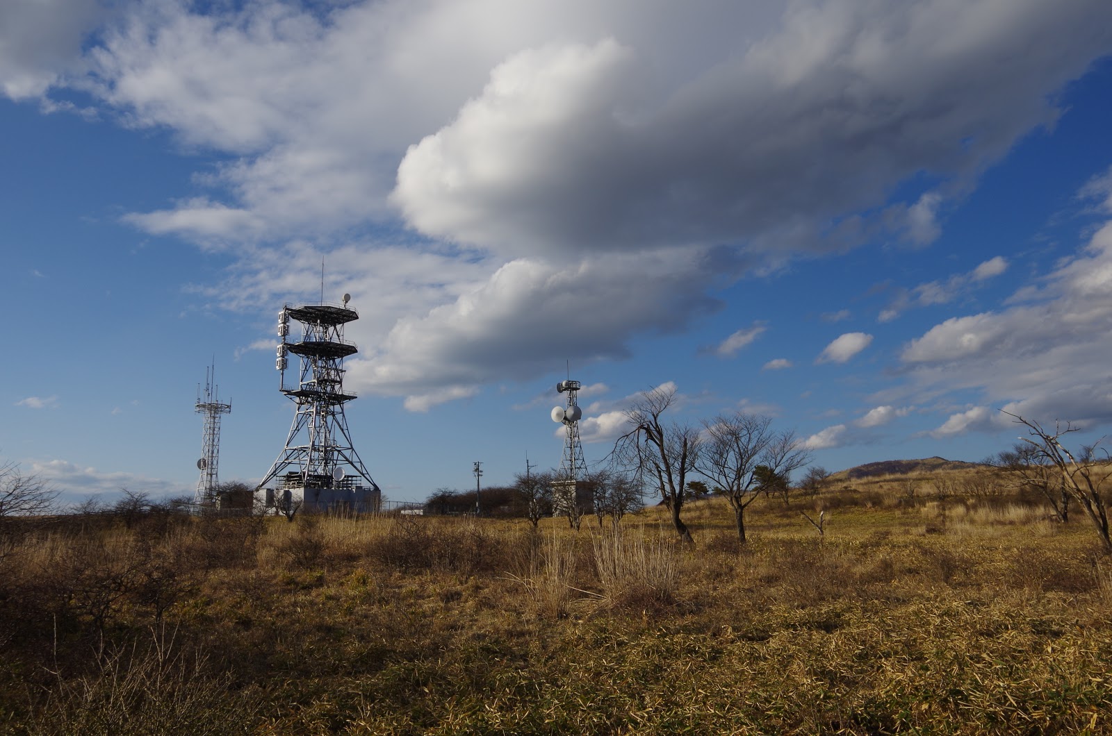 高ボッチ高原展望広場から、さらに道を進みます。寂しい風景の中に電波塔が何機か見えます。こういう荒涼とした風景大好きですね。